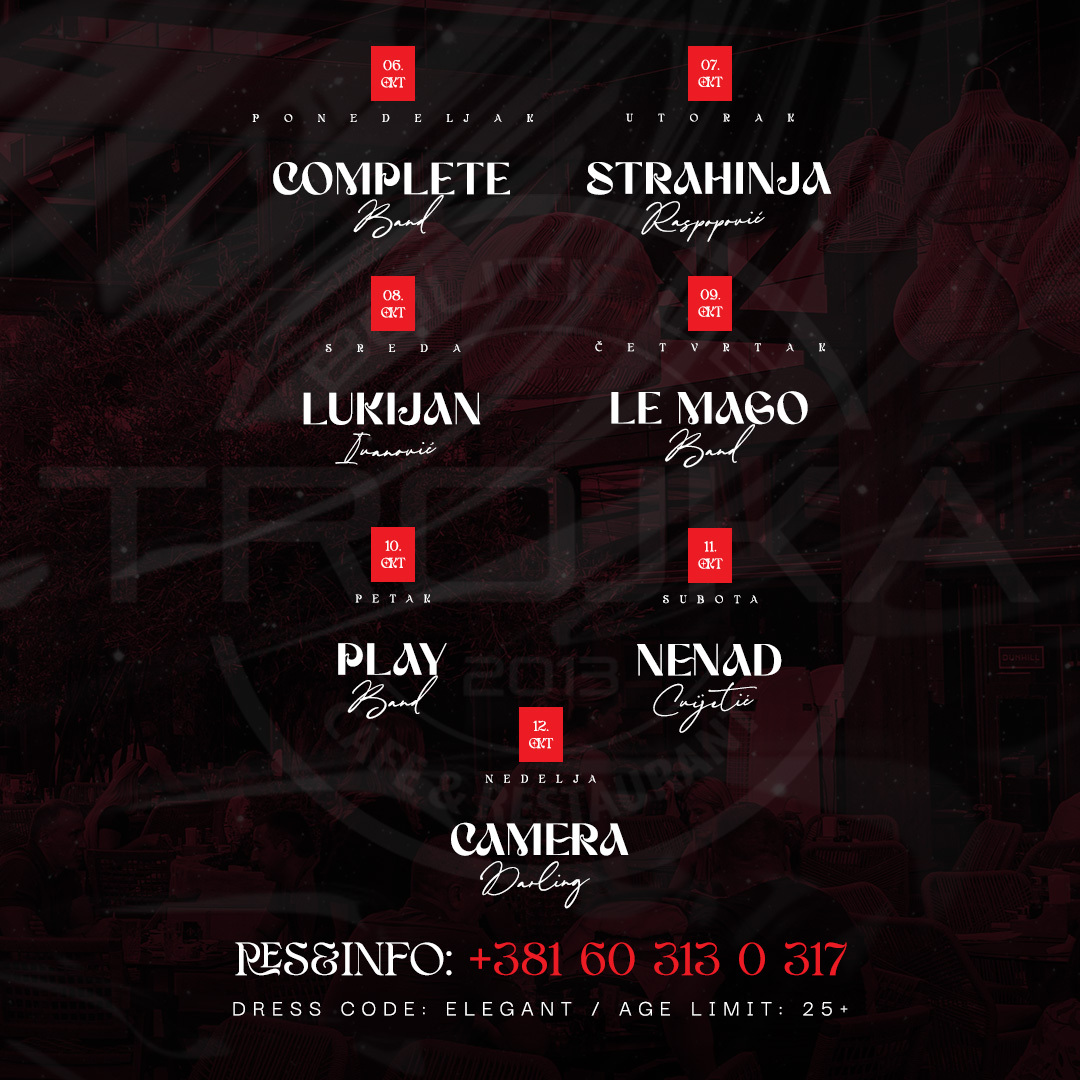 Boutique Trojka je casual dinning restoran internacionalne kuhinje sa dodirom Azije, smešten sa druge strane reke u mirnom delu grada. Pored profesionalne usluge restoran nudi poseban ambijent koji se sastoji od bašte i unutrašnjosti na dva nivoa. Kapacitet restorana zajedno sa baštom je 570 gostiju.